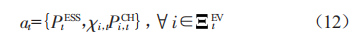 動作at是針對環(huán)境狀態(tài)st所做出的控制決策。本文將儲能充放電功率以及用戶充電樁功率作為控制動作,即: