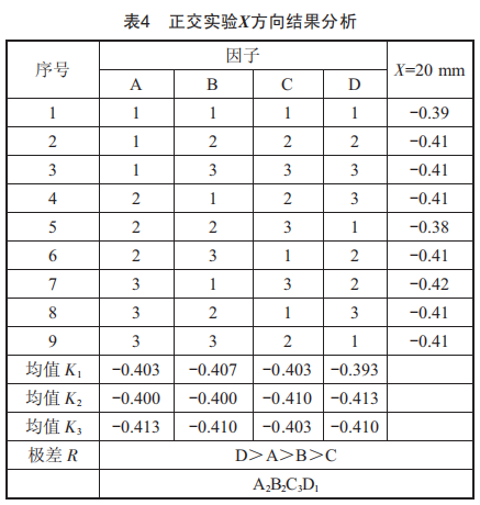 對(duì)X方向的誤差進(jìn)行正交分析,如表4所示。
