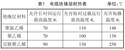 在電力系統(tǒng)中,所選電纜的絕緣材質(zhì)不同、橫截面不同、過流能力不同,其耐熱程度也不同,電纜絕緣層耐熱表如表1所示。