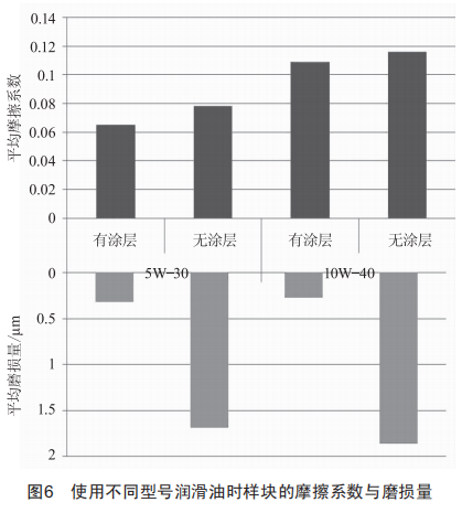 (3)在相同試驗條件下,涂層樣塊使用5W—30潤滑油的磨損量略大于使用10W—40的磨損量。
