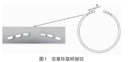 試驗采用合金鋼活塞環(huán),取6份長度為8 mm的樣塊,其取樣部位示意圖如圖1所示。