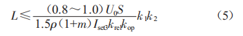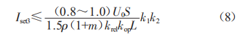 當(dāng)采用斷路器作為配電線路的保護電器時,式(4)中最小接地故障電流Ik須大于斷路器的瞬時過電流脫扣器整定值Iset3。考慮斷路器的動作誤差系數(shù)krel及動作系數(shù)kop后,式(4)可變換為: