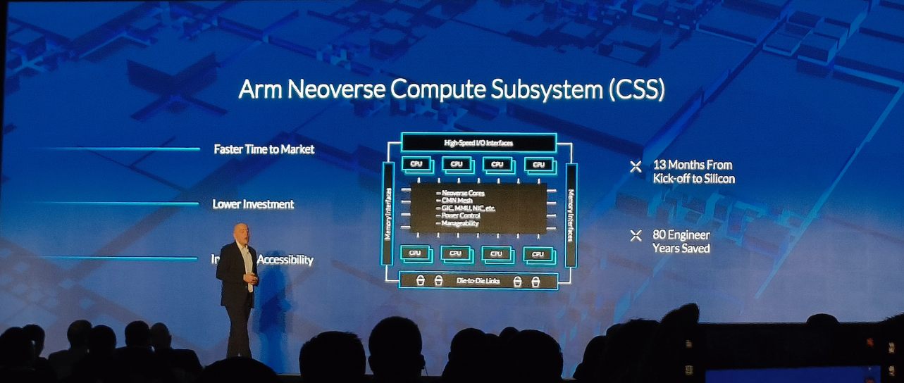 Arm幾十年來一直專注于計算性能,專注于計算性能與軟件的緊密藕合。而計算性能不僅和CPU IP相關,而是包括了多種IP的組合、互連,以及軟硬件的協(xié)同工作。Arm不僅提供IP,還提供了完整的計算解決方案。在移動計算領域有Arm 全面計算解決方案 (Arm Total Compute Solutions),在物聯(lián)網(wǎng)領域有Arm Corstone,在汽車領域有SOAFEE,而在基礎設施領域則是Arm Neoverse平臺。