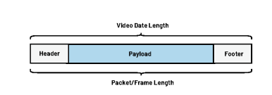 在數(shù)據(jù)通信中,有效數(shù)據(jù)速率描述了不包括協(xié)議開銷的數(shù)據(jù)速率容量,此概念也適用于視頻數(shù)據(jù)通信。通常,一個數(shù)據(jù)包或一幀中傳輸?shù)挠行б曨l數(shù)據(jù)量為:像素位深度×像素數(shù)。圖6說明了有效視頻數(shù)據(jù)和開銷之間的關系。