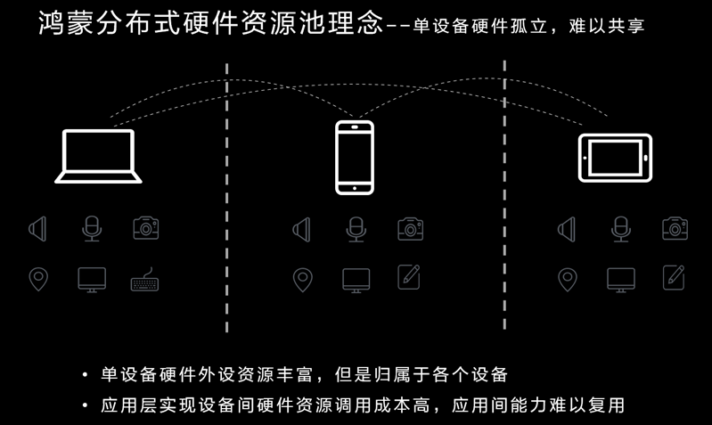 比如,當我們?nèi)粘T赑C端進行文檔編輯時,若需要從平板復制一段文字,或者使用手機拍攝照片然后分別將素材插入文檔時,就需要我們分別在不同的設備上操作,然后將物料再行匯總發(fā)送至PC端口進行編輯,過程十分麻煩。如果應用開發(fā)者從應用層面實現(xiàn)設備間硬件能力共享,不但開發(fā)者工作量和難度非常大,各個應用之間也需要重復開發(fā),能力難以復用和繼承。