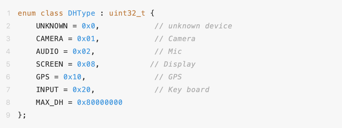 Step 1:定義硬件外設類型枚舉值CAMERA