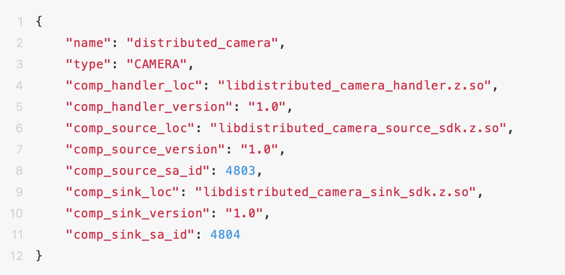 由于分布式硬件良好的南向接入解耦設計,如果有新硬件外設接入,只需要如下三步即可,以分布式相機配置為例,開發(fā)者可以基于下方實例進行參考: