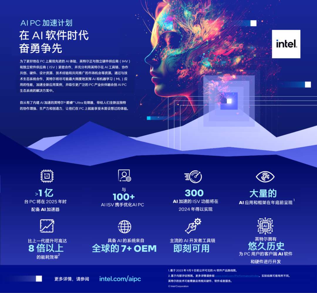 酷睿Ultra系列正是AI PC走向普及的轉(zhuǎn)折點(diǎn),除了擁有強(qiáng)大的基礎(chǔ)性能,酷睿Ultra系列還首次融入了用于AI加速的NPU模塊,即神經(jīng)網(wǎng)絡(luò)處理單元。這不僅可以讓“大餅AI變聲”這樣的AI應(yīng)用在離線、節(jié)能的狀態(tài)下流暢運(yùn)行,還將推動(dòng)AI相關(guān)產(chǎn)業(yè)進(jìn)一步發(fā)展。預(yù)計(jì)在2025年前,全球會(huì)出貨超過(guò)1億臺(tái)AI PC。合作涉及100家ISV合作伙伴,覆蓋300余項(xiàng)AI加速功能,AI應(yīng)用將會(huì)得到更大范圍的推廣。