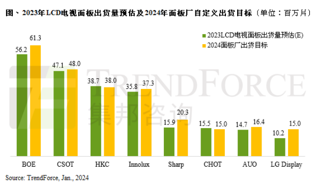 TrendForce集邦咨詢:受惠LCD電視面板報(bào)價(jià)轉(zhuǎn)為獲利,面板廠生產(chǎn)意愿提高,2024年出貨量預(yù)估約2.42億片