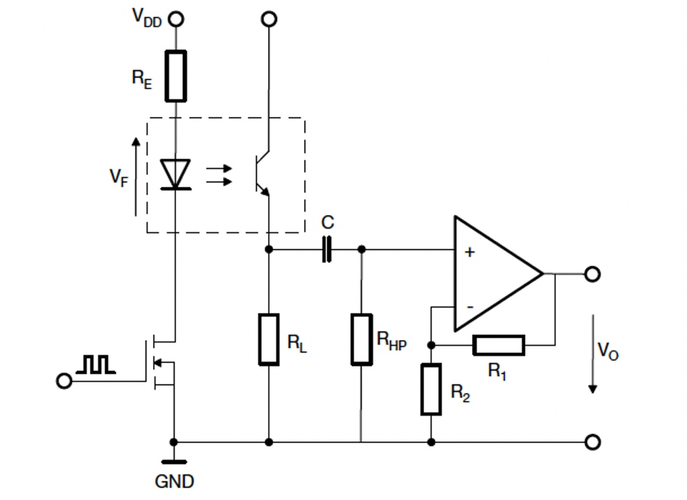 圖1:探測(cè)器配置DC光抑制電路和高通濾波器(圖片來(lái)源:Vishay Intertechnology)