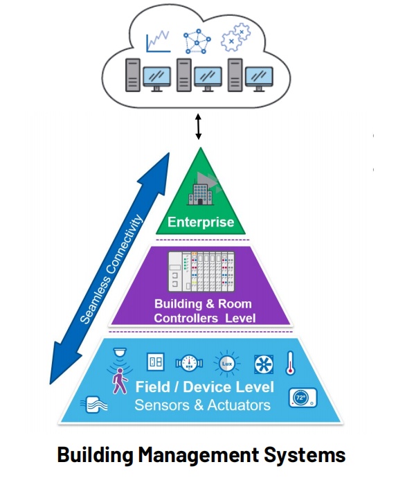 最下面一層就是傳感器層(Field sensor Layer)。這一層會接大量傳感器來感知到現(xiàn)場或整個樓宇的狀態(tài),是獲取信息的關鍵,因此是非常重要的。其實,嚴格來說還有最后一個設備層,包含了壓縮機等設備,這層有時也同樣會接在控制器層,總而言之就是現(xiàn)場的設備。