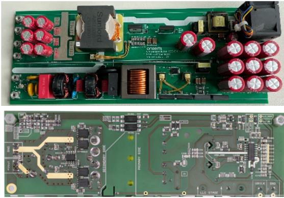 本方案SiC MOS器件支持高頻PFC,并采用先進(jìn)的圖騰柱無橋PFC控制器,以及工作頻率高達(dá)150KHz的高頻LLC級,在輸出級上通過高效率全橋同步整流,實(shí)現(xiàn)高功率密度。