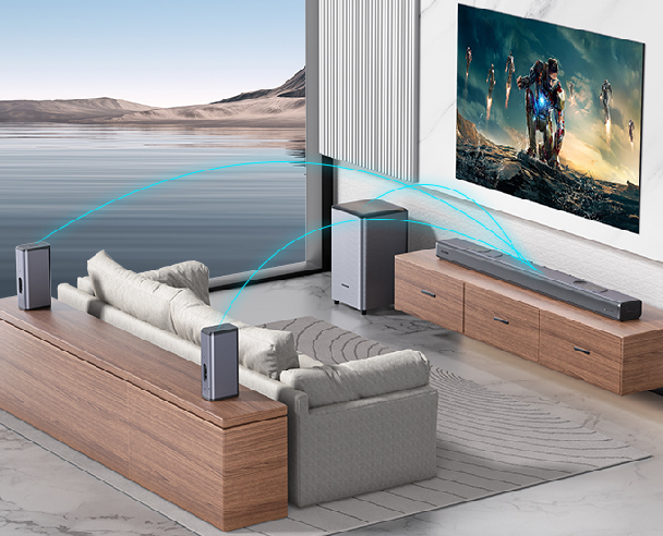 瀚宏智能家庭影院回音壁音響采用7.1.4杜比全景聲真無線全新設計,無論是在看電影、打游戲還是聽音樂都能享受逼真且沉浸式全景環(huán)繞體驗。支持藍牙連接,USB無損播放,電影、音樂、新聞模式任意切換,帶給你極致便捷的科技體驗感。
