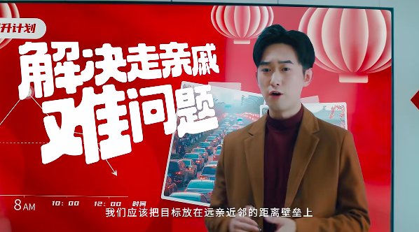 就像片中的男主決定為了難得的睡眠時(shí)間,勇敢的向家人提出《拜年KPI提升計(jì)劃》,用TCL智能終端產(chǎn)品所帶來(lái)的創(chuàng)新科技為家人帶來(lái)另一種高效的拜年方式,直面走親戚難、耗時(shí)長(zhǎng)的問(wèn)題。