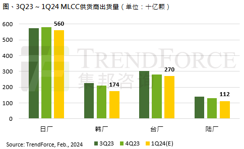 TrendForce集邦咨詢:訂單需求放緩,預估2024年第一季MLCC出貨量環(huán)比減少7%