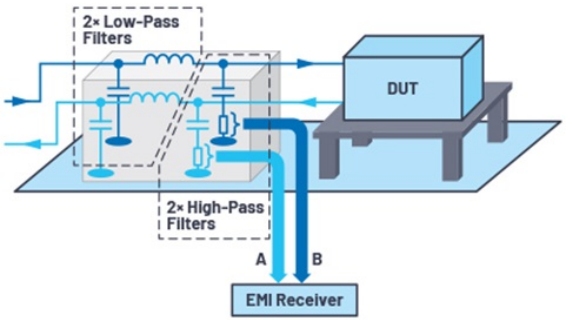 圖5. LISN置于電源和被測(cè)器件(DUT)之間