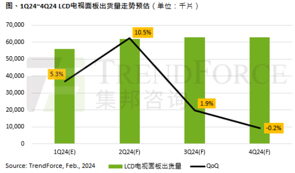 TrendForce集邦咨詢:2024年第一季LCD電視面板出貨量預(yù)估約5,580萬(wàn)片,第二季將續(xù)增