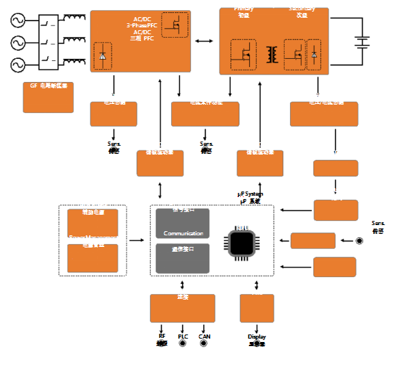 所選擇的拓?fù)浣Y(jié)構(gòu)(即二電平還是三電平)以及充電樁需要單向運(yùn)行還是雙向運(yùn)行,都會影響器件的選擇。實(shí)現(xiàn)直流充電樁 PFC 和 DC-DC 級的拓?fù)浣Y(jié)構(gòu)選項(xiàng)有許多。由于功率和電壓水平非常高,許多 OEM 的首選架構(gòu)一般是三級功率因數(shù)校正 (PFC)。PFC 設(shè)計(jì)最常用的拓?fù)浣Y(jié)構(gòu)有三開關(guān) Vienna(單向)、NPC、A-NPC、T-NPC(雙向替換二極管)和六開關(guān)(雙向) 。DC?DC 級通常以全橋或相移 LLC 及其變體實(shí)現(xiàn),并采用雙有源橋 (DAB) 架構(gòu)支持雙向拓?fù)浣Y(jié)構(gòu)。這些拓?fù)浣Y(jié)構(gòu)包括二電平和三電平系統(tǒng),它們分別采用 600 至 650 V 或 900 至 1200 V 開關(guān)和二極管。(進(jìn)一步了解拓?fù)浣Y(jié)構(gòu):快速直流電動汽車充電:系統(tǒng)中使用的常見拓?fù)浜凸β势骷?