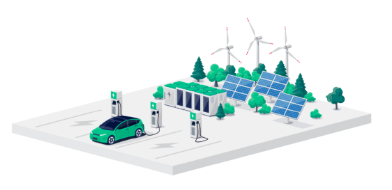圖9. 由可再生太陽能電池板和儲能設(shè)施供電的快速超級充電樁