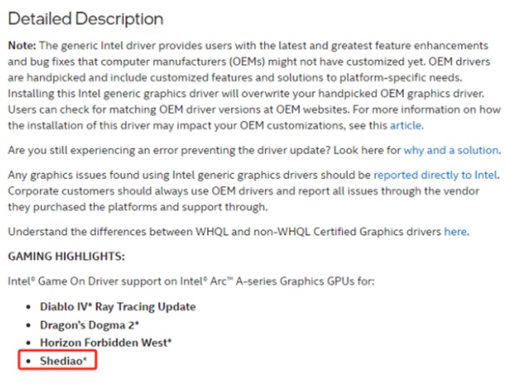 3月20日,英特爾銳炫放出了31.0.101.5379版本的銳炫獨立顯卡驅(qū)動,首發(fā)支持了《射雕》這款游戲,這也是此前英特爾所承諾的在游戲上市前就提前布局支持,上線即能順暢游玩,專注為玩家提供更優(yōu)的驅(qū)動和游戲體驗。