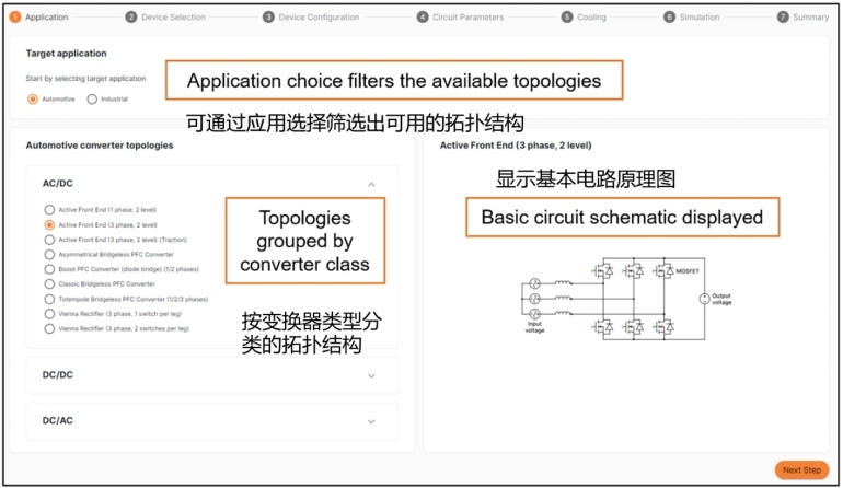 圖2:在Elite仿真工具中選擇應(yīng)用和拓?fù)浣Y(jié)構(gòu)