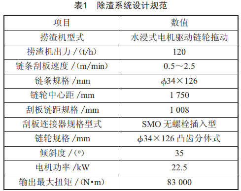 除渣系統(tǒng)設(shè)計(jì)規(guī)范如表1所示。