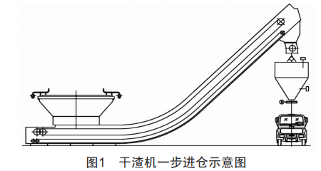 此次除渣系統(tǒng)改造設(shè)計(jì)原則:將原濕式除渣系統(tǒng)改為干式除渣系統(tǒng),電動(dòng)驅(qū)動(dòng)。干渣機(jī)采用一步進(jìn)倉(cāng)方案,如圖1所示。