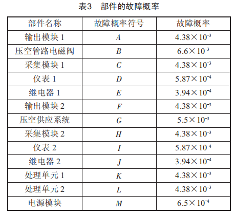 表3中部件或系統(tǒng)之間的故障發(fā)生概率數(shù)值是不相關(guān)的,也就是說(shuō)不考慮不同部件之間故障的相互影響。