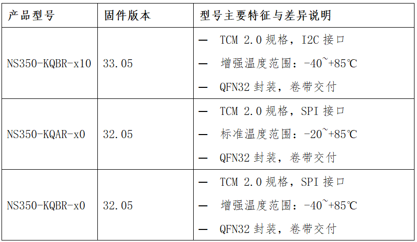 2024年4月18日,國(guó)民技術(shù)第四代可信計(jì)算芯片NS350 v32/v33系列產(chǎn)品正式發(fā)布并開(kāi)始量產(chǎn)供貨。NS350 v32/v33是一款高安全、高性能、超值可信密碼模塊2.0 (TCM 2.0)安全芯片,適用于PC、服務(wù)器平臺(tái)和嵌入式系統(tǒng)。