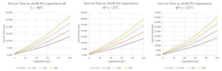 圖 5.導(dǎo)通時(shí)間與 dv/dt 引腳電容的關(guān)系