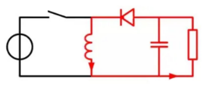 當開關(guān)斷開時,在電感Ls上產(chǎn)生反向電動勢,使二極管D從截止變成導(dǎo)通。電感給負載供電并對輸出電容充電,維持輸出電壓不變。