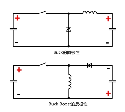 Buck-Boost電路的輸入電壓與輸出電壓的極性是相反的。