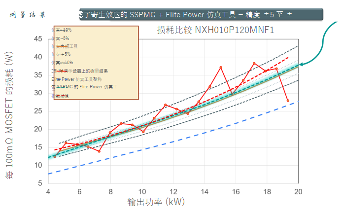 安森美分析并比較了 25kW 直流快充的實(shí)測(cè)數(shù)據(jù)與仿真結(jié)果。盡管仿真和實(shí)際測(cè)得的總模塊損耗之間存在微小偏差,但顯示出良好的相關(guān)性。SSPMG 派生模型納入了布局寄生效應(yīng)和電機(jī)繞組電容等復(fù)雜細(xì)節(jié),可提高仿真結(jié)果的準(zhǔn)確度,從而幫助 Elite Power 仿真工具提供更深入的分析。