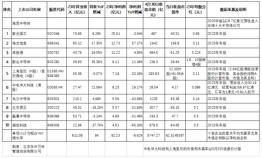 Follow the Money:2023年最賺錢的十家國內(nèi)芯片設(shè)計上市公司及其整體表現(xiàn)