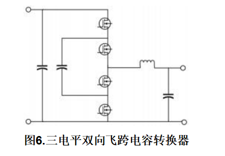 飛跨電容轉(zhuǎn)換器(FCC)是一種三電平轉(zhuǎn)換器,這種配置能夠?qū)崿F(xiàn)雙向功率流。它由四個(gè)開關(guān)、一個(gè)電感器和一個(gè)跨接在中間兩個(gè)開關(guān)的飛跨電容組成。由于這是一種三電平拓?fù)浣Y(jié)構(gòu),飛跨電容充當(dāng)了箝位電容(或恒壓源)的角色,該結(jié)構(gòu)還具有開關(guān)電壓應(yīng)力減半的優(yōu)點(diǎn)。因此,這種拓?fù)浣Y(jié)構(gòu)的優(yōu)點(diǎn)包括使用較低電壓、具有更高性能開關(guān)、無源元件尺寸較小以及減少了電磁干擾。 這種電路拓?fù)浣Y(jié)構(gòu)的缺點(diǎn)是必須配備啟動(dòng)電路,將飛跨電容的電壓調(diào)節(jié)到母線電壓的一半,從而充分利用低電壓開關(guān)的優(yōu)勢。