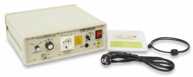 圖5. 典型的線路阻抗穩(wěn)定網(wǎng)絡(luò)(LISN)用于將線纜傳導(dǎo)的電磁干擾耦合到頻譜分析儀。照片由Tekbox Digital Solutions提供。