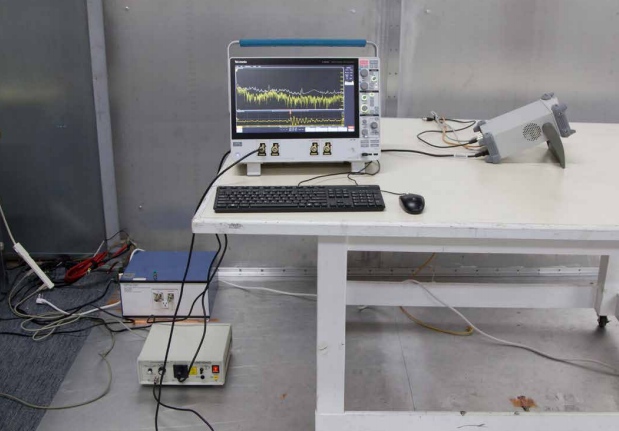 一旦產(chǎn)品的諧波特性完全表征,就該看看哪些諧波實際上會輻射。為此,我們可以使用連接到距產(chǎn)品或待測系統(tǒng)至少1m遠(yuǎn)的未校準(zhǔn)天線的4/5/6系混合示波器測量實際的輻射(圖4)。通常,這些輻射是來自連接的I/O或電源電纜以及屏蔽外殼的接縫或孔隙。將這些數(shù)據(jù)與近場和電流探頭的數(shù)據(jù)進行比較。實際測量的輻射應(yīng)該能夠表明先前探測所確定的能量來源。