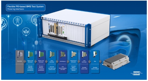 【圖為:Pickering基于PXI的電池管理系統(tǒng)(BMS)測試系統(tǒng)實例】