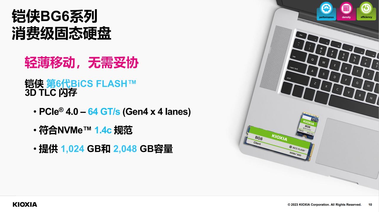 鎧俠已經(jīng)準備好了鎧俠BG6系列消費級產(chǎn)品,在M.2 2230規(guī)格下最高提供2TB存儲空間,支持PCIe® 4.0 x4,即可以提供64GT/s傳輸速率。同時還支持NVMe? 1.4c規(guī)范。這意味著不僅輕薄筆記本,平板電腦、游戲掌機也都能獲得大容量擴展支持。