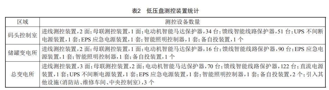 低壓盤采用智能MCC,每個出線回路配有智能馬達(dá)保護器或線路保護器,智能馬達(dá)保護器和線路保護器可實現(xiàn)狀態(tài)監(jiān)控和電氣參數(shù)測控。每個變電所低壓盤按照系統(tǒng)圖配置一個觸摸屏柜,觸摸屏安裝在柜門面板上,可顯示測控信息,實現(xiàn)系統(tǒng)圖展示、狀態(tài)查看、故障分析、實時電氣數(shù)據(jù)查詢、事故記錄查詢,并具有詳盡的診斷和事件記錄功能;在觸摸屏上還可以實現(xiàn)遙信、遙測、遙調(diào)、遙控。低壓盤測控裝置統(tǒng)計如表2所示。