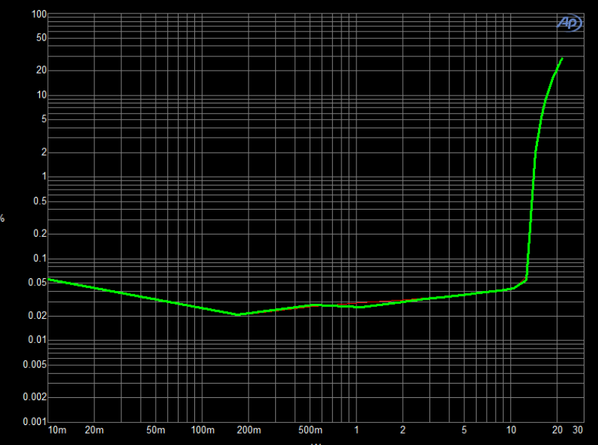 在全音頻范圍內(nèi)(20Hz至20kHz),BD模式下的總諧波失真加噪聲(THD+N)低于0.15%,這一性能達到了業(yè)界領先水平,充分展現(xiàn)了類比功放在音質(zhì)保真方面的卓越表現(xiàn)。而1SPW模式在20~20kHZ測試下,THD+N也控制在0.3%以內(nèi),這一模式在保持高效率和低功耗的同時,依然維持了優(yōu)異的失真性能,滿足了市場對高端音頻產(chǎn)品設計的嚴格要求。