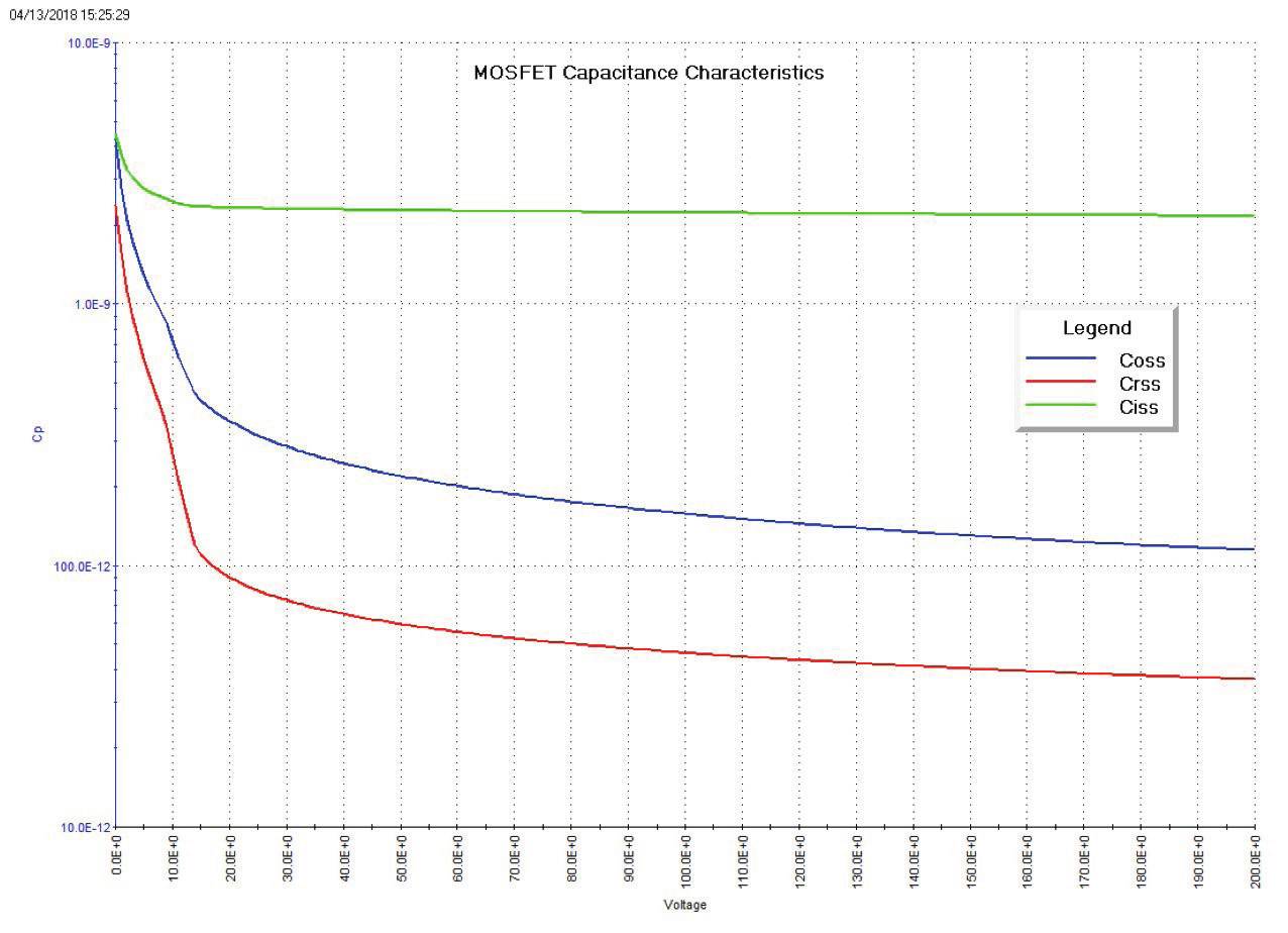 圖13. MOSFET掃描到200V的電容特性