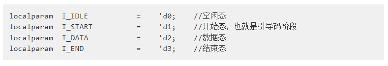 通過(guò)上面的分析可知,一共可以分為如下四個(gè)狀態(tài)。I_START其中包括引導(dǎo)碼和重復(fù)碼,根據(jù)時(shí)間可以確定,下一個(gè)狀態(tài)該跳轉(zhuǎn)到那。
