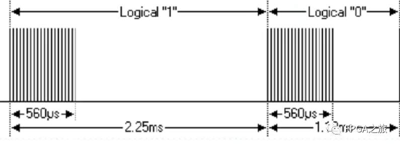 在最后一個(gè)數(shù)據(jù)接收完成了,遙控器會(huì)發(fā)送560us的信號(hào),然后空閑,表示發(fā)送結(jié)束。