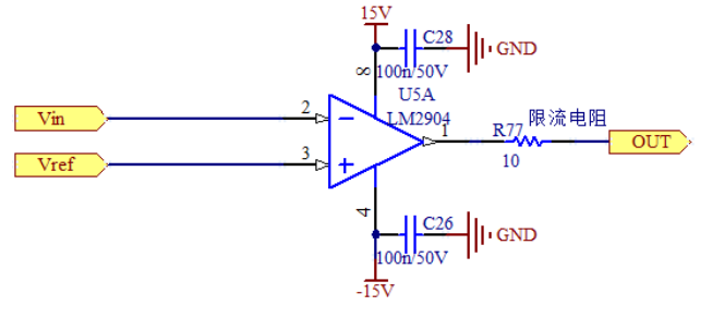 比較器接了限流電阻—“R74、R77”,這是因為比較器在幅值切換時,快速上升或下降沿對后級容性負載進行充放電,這個充放電電流來自這個有源器件—比較器,因此加限流電阻目的是防止電流沖擊。
