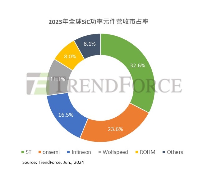 TrendForce集邦咨詢:2023年SiC功率元件營收排名,ST以32.6%市占率穩(wěn)居第一
