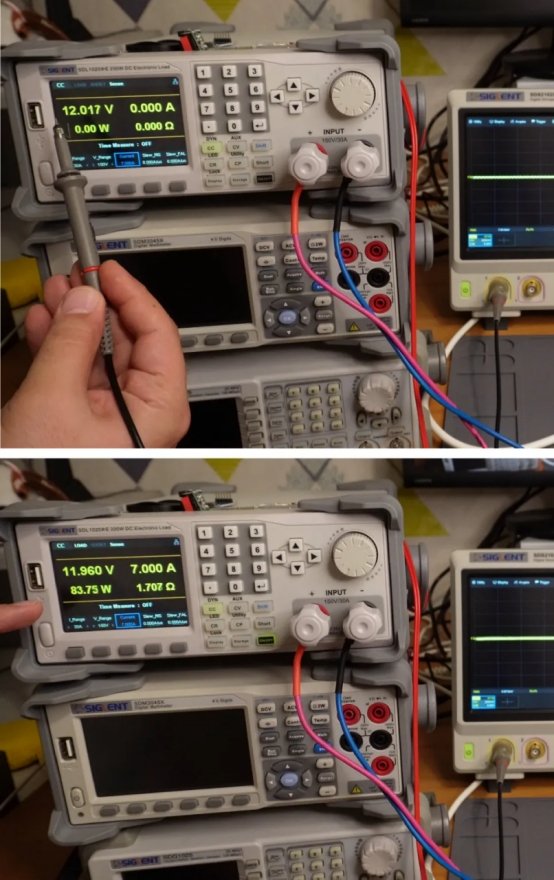 圖 7 顯示了組裝好的 PCB 板。我使用直流負(fù)載來測(cè)試電壓調(diào)節(jié)和輸出電壓降。首先,我測(cè)試了無負(fù)載輸出電壓,其次測(cè)試了 7A 最大負(fù)載輸出電壓(圖 8)。有關(guān)詳細(xì)測(cè)試,請(qǐng)觀看 YouTube 視頻??刂破餍酒哂星度胧杰泦?dòng)器電路,可實(shí)現(xiàn)無火花電源啟動(dòng)。
