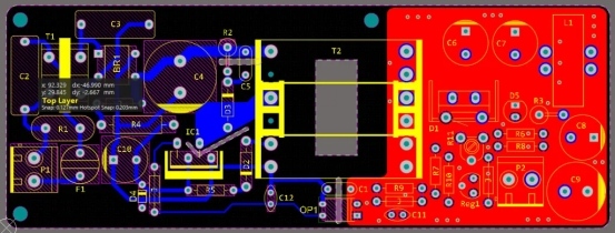 該電源的最大輸出功率為 84W,這意味著它可以在 12V 輸出下連續(xù)處理 7A。變壓器可以提供更高的電流,但是,考慮到教學(xué)目的(變壓器的手動(dòng)繞線)和開關(guān)控制器上的熱應(yīng)力(控制器 MOSFET 的峰值電流在 7A 時(shí)約為 2.3A)??刂破餍酒?KA1M0565,它在變壓器上使用 470K 啟動(dòng)電阻和小型輔助繞組。變壓器的鐵氧體磁芯是 ER28-17-11,開關(guān)頻率為 67KHz。電位器允許用戶精確調(diào)整輸出電壓并將其設(shè)置為 12V。