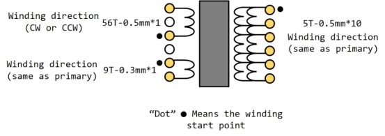 C. 初級(jí)繞組(引腳 1 至引腳 3):56 圈 0.5mm * 1 線(電感:568uH)