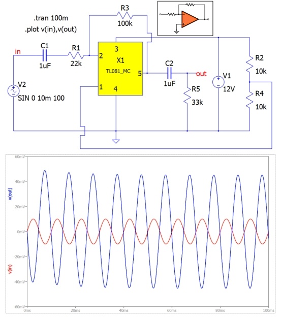 圖4:運放TL081的輸入與相關(guān)反相放大器電路